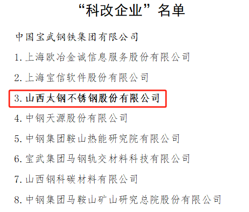 6月20日,國務院國有資產監(jiān)督管理委員會公布最新“科改企業(yè)”名單,據(jù)名單顯示,山西太鋼不銹鋼股份有限公司入選其中。